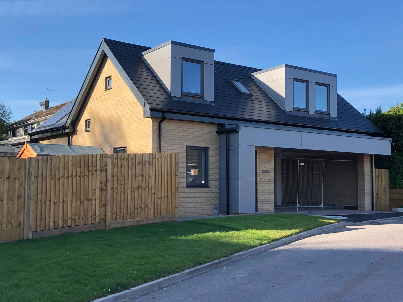 3 New homes in the centre of Alresford using clean pallete of materials and contemporary entrance details.
